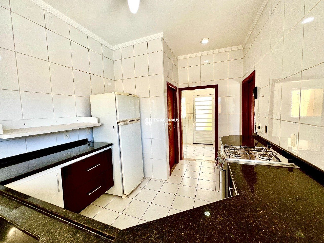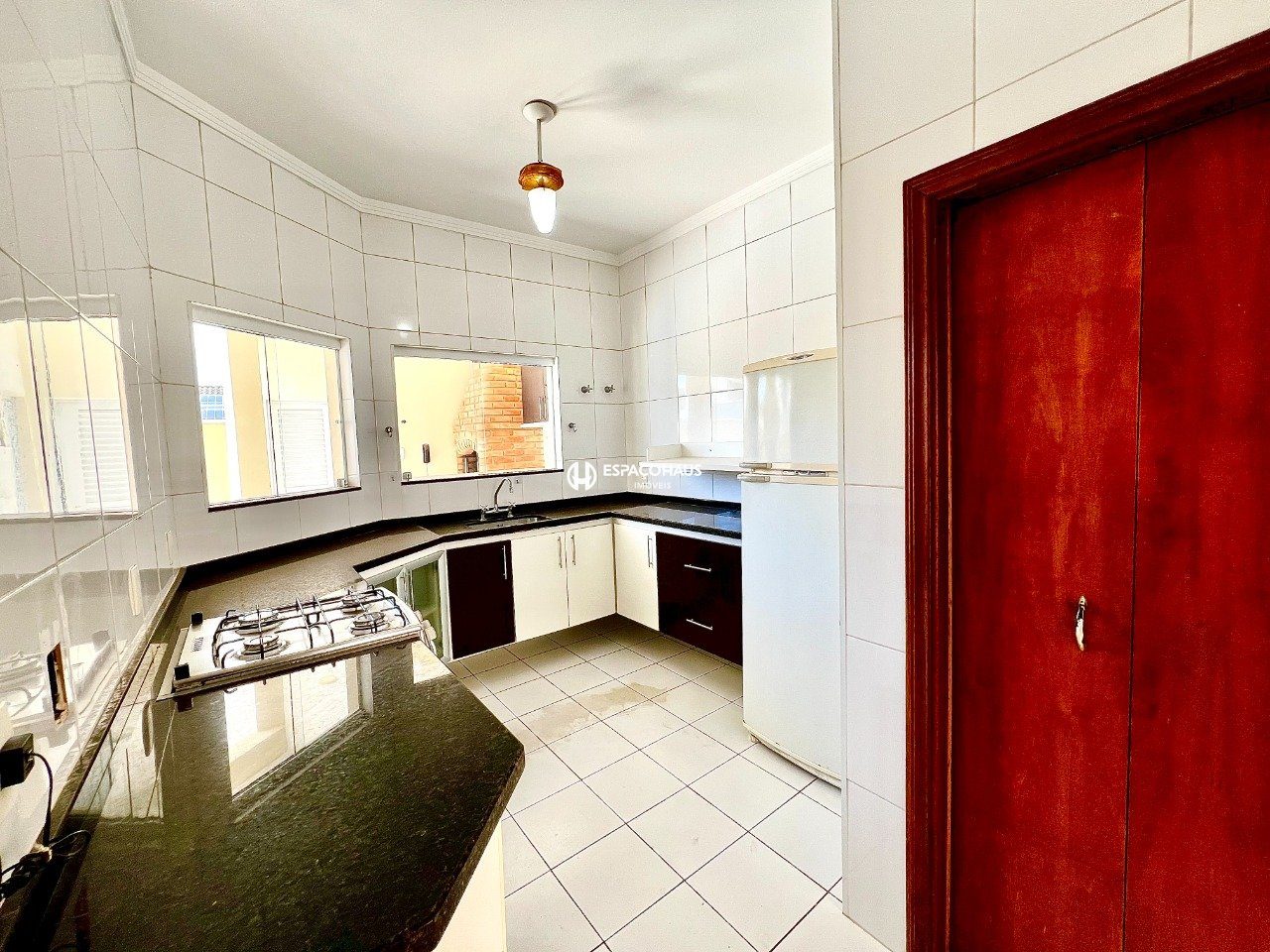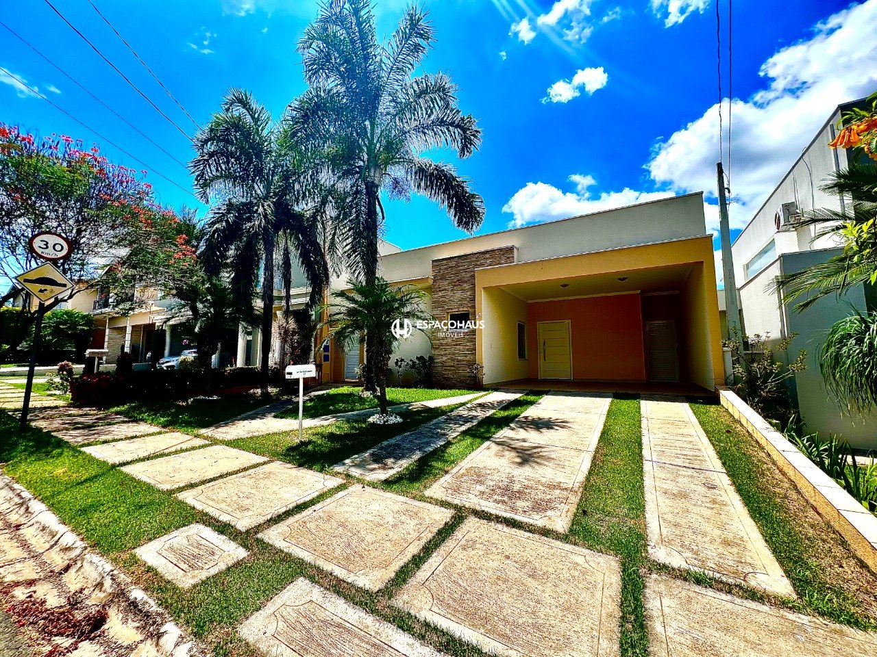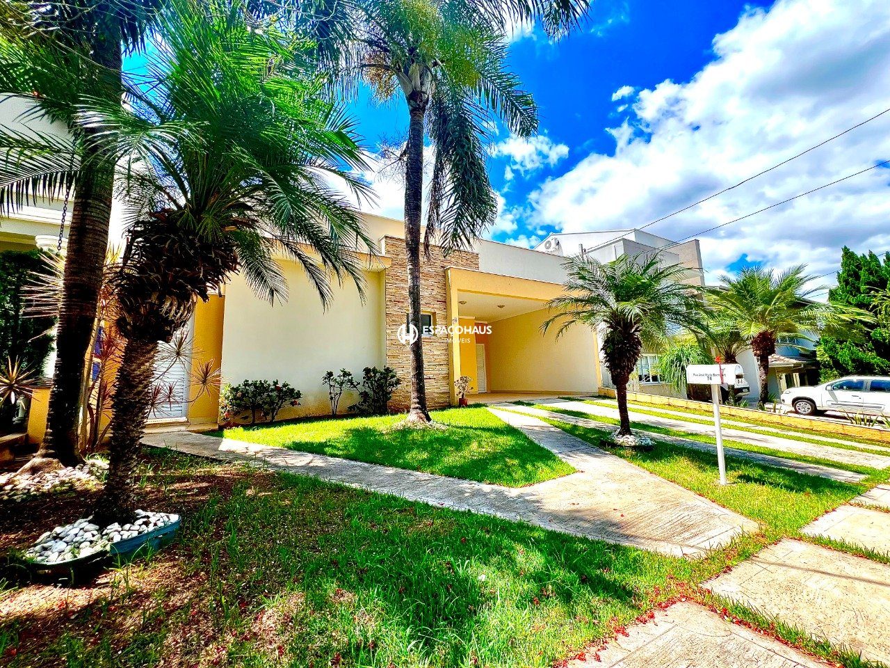 Casa térrea de 3 dormitórios, sendo 1 suíte com closet e ar-condicionado, e um dos quartos com armários planejados e ar-condicionado, sala ampla para dois ambientes, cozinha planejada, lavanderia com armários, quintal com espaço gourmet e uma bela piscina, além garagem para 4 carros sendo 2 cobertas.