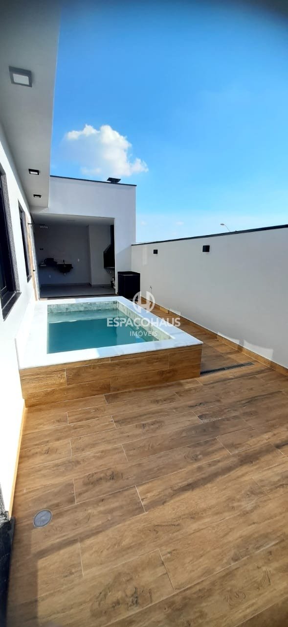 Na área externa possui espaço gourmet e piscina, perfeitos para registros especiais com família e amigos, além do lavabo, quintal e depósito na garagem.