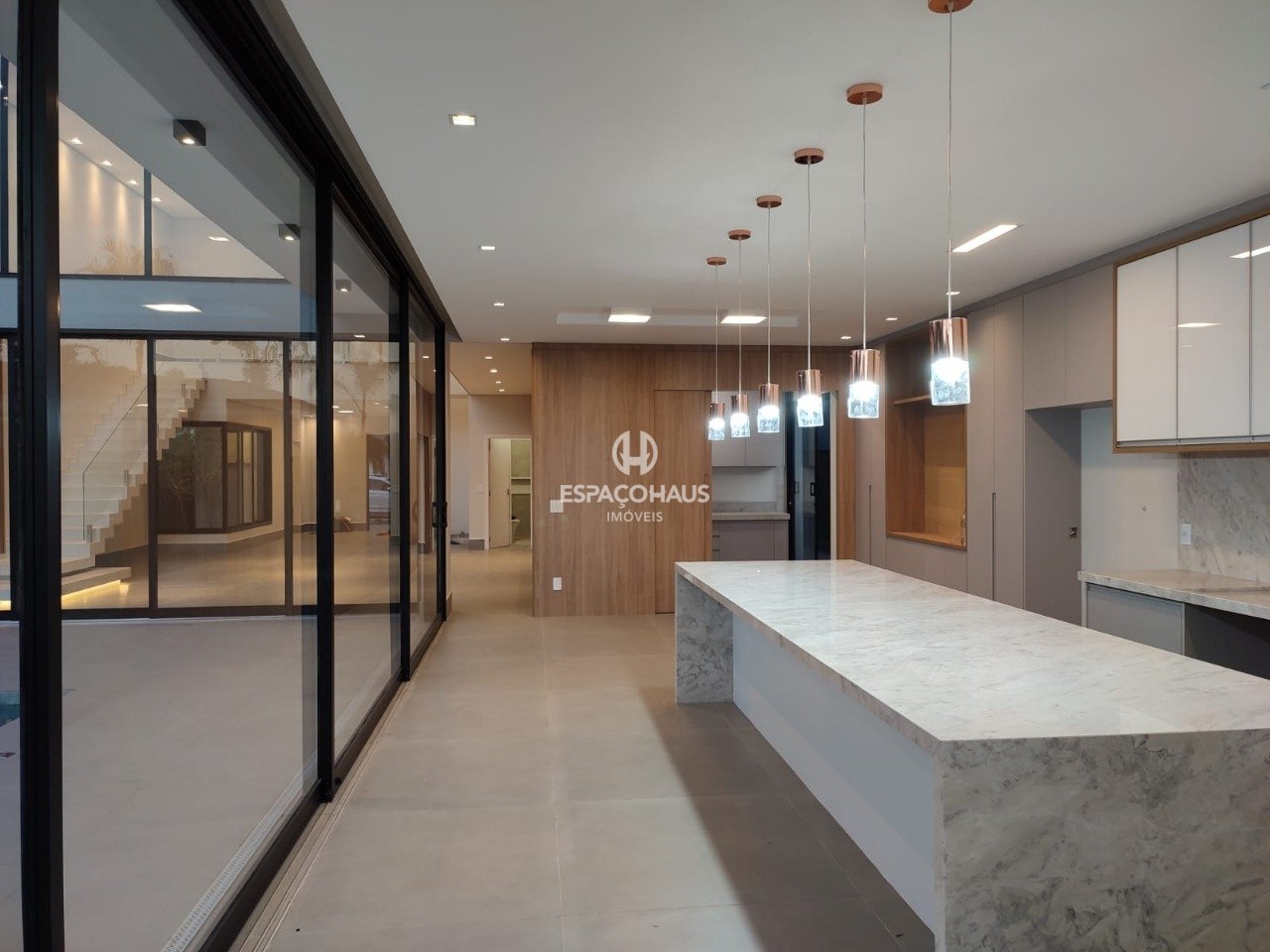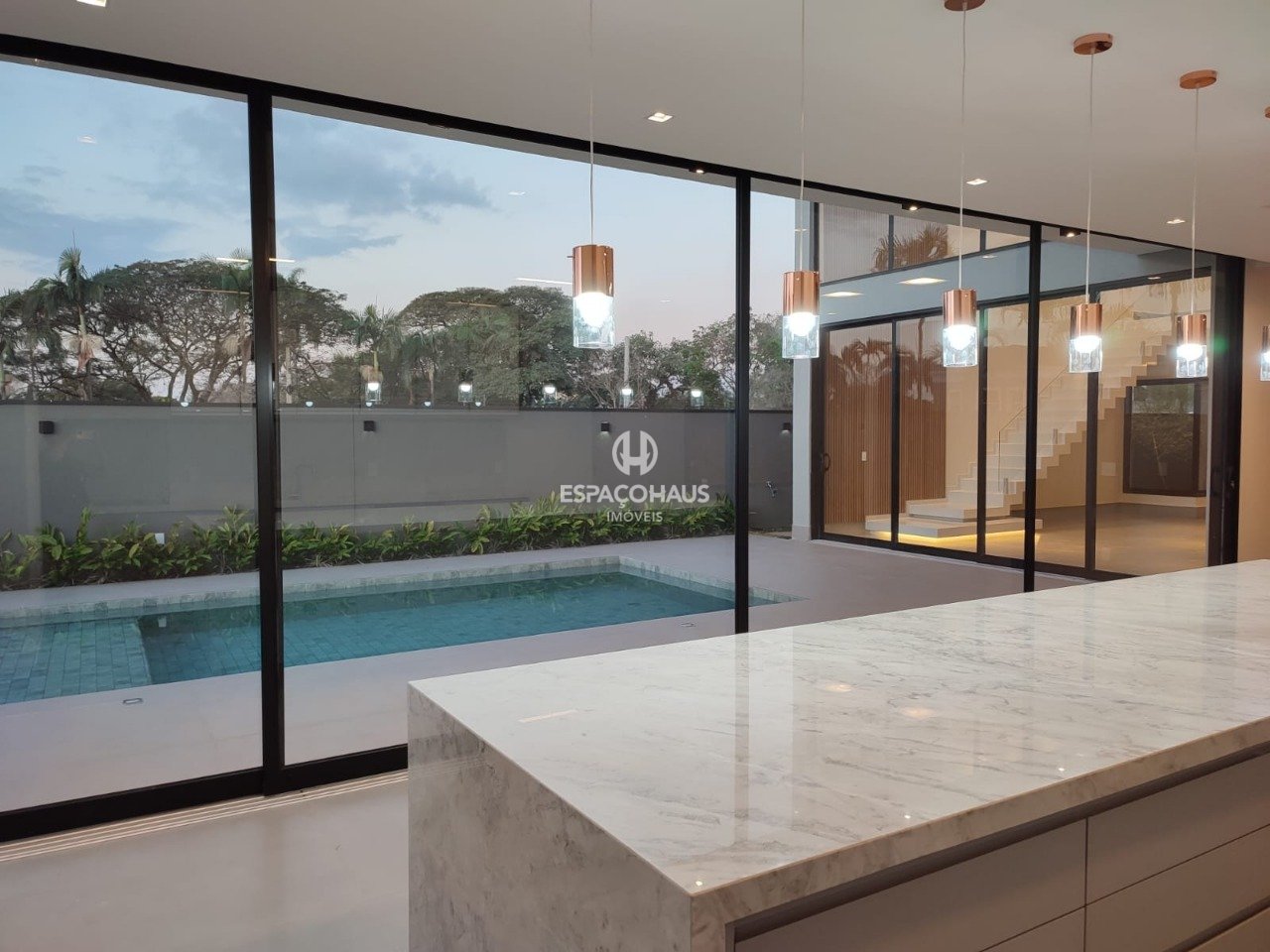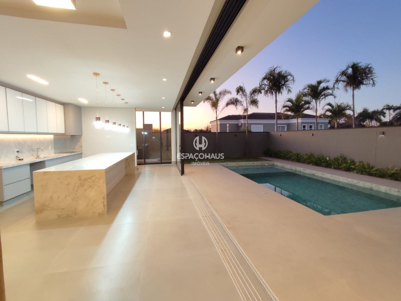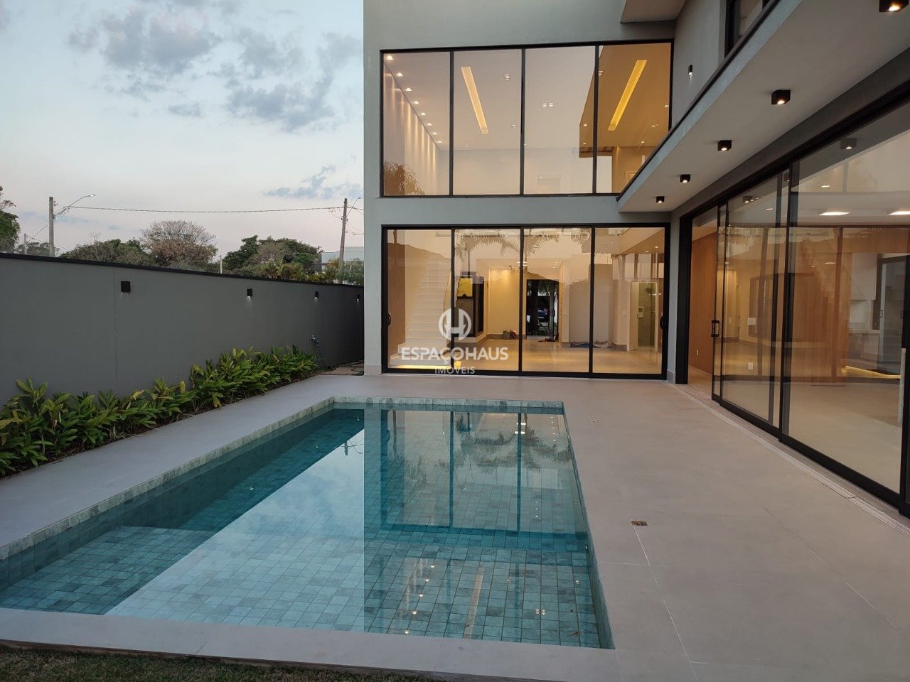 Esta residência foi projetada com atenção aos detalhes, oferecendo um estilo de vida luxuoso e funcional. O pé direito duplo na sala de estar cria uma sensação de amplitude, enquanto a integração da área gourmet com a piscina proporciona momentos memoráveis de lazer.