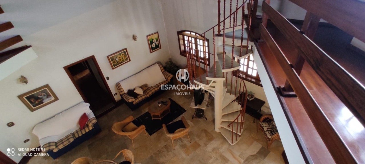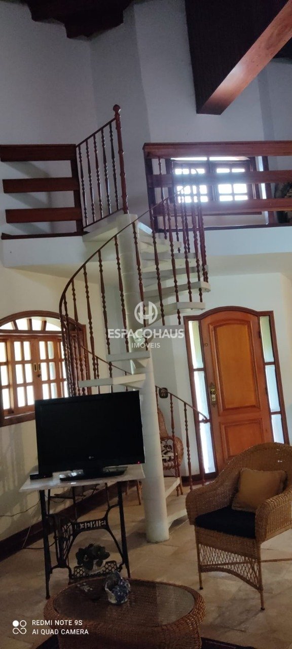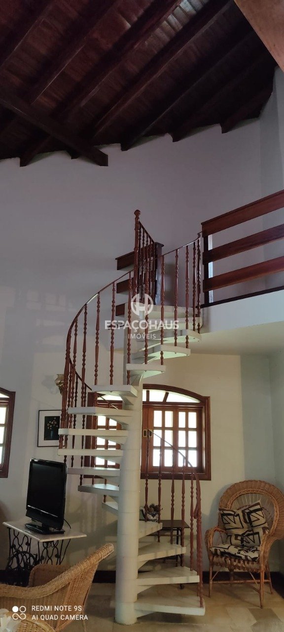 O destaque principal é uma encantadora casa de três dormitórios, sendo um deles uma suíte. A sala é ampla, oferecendo dois ambientes distintos, proporcionando um espaço confortável e acolhedor. Há também um mezanino acessível por uma escada em espiral, que leva à parte superior da casa.