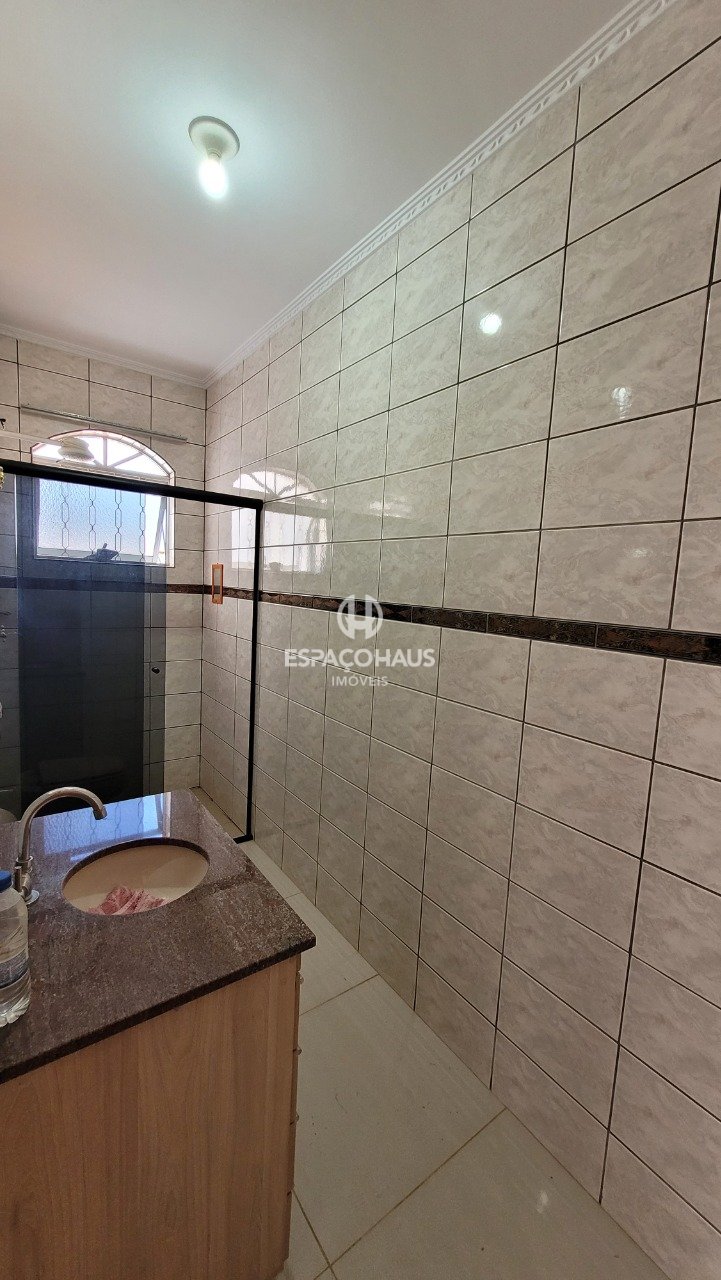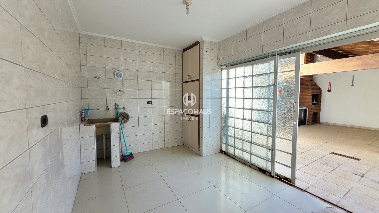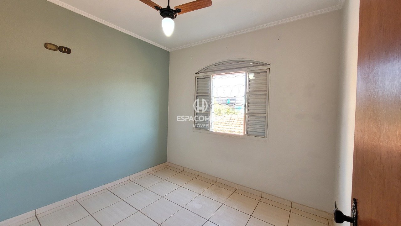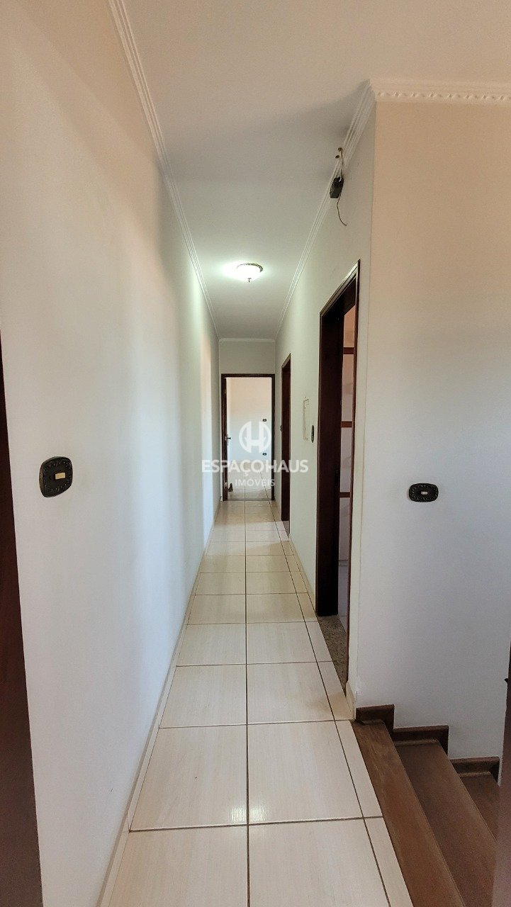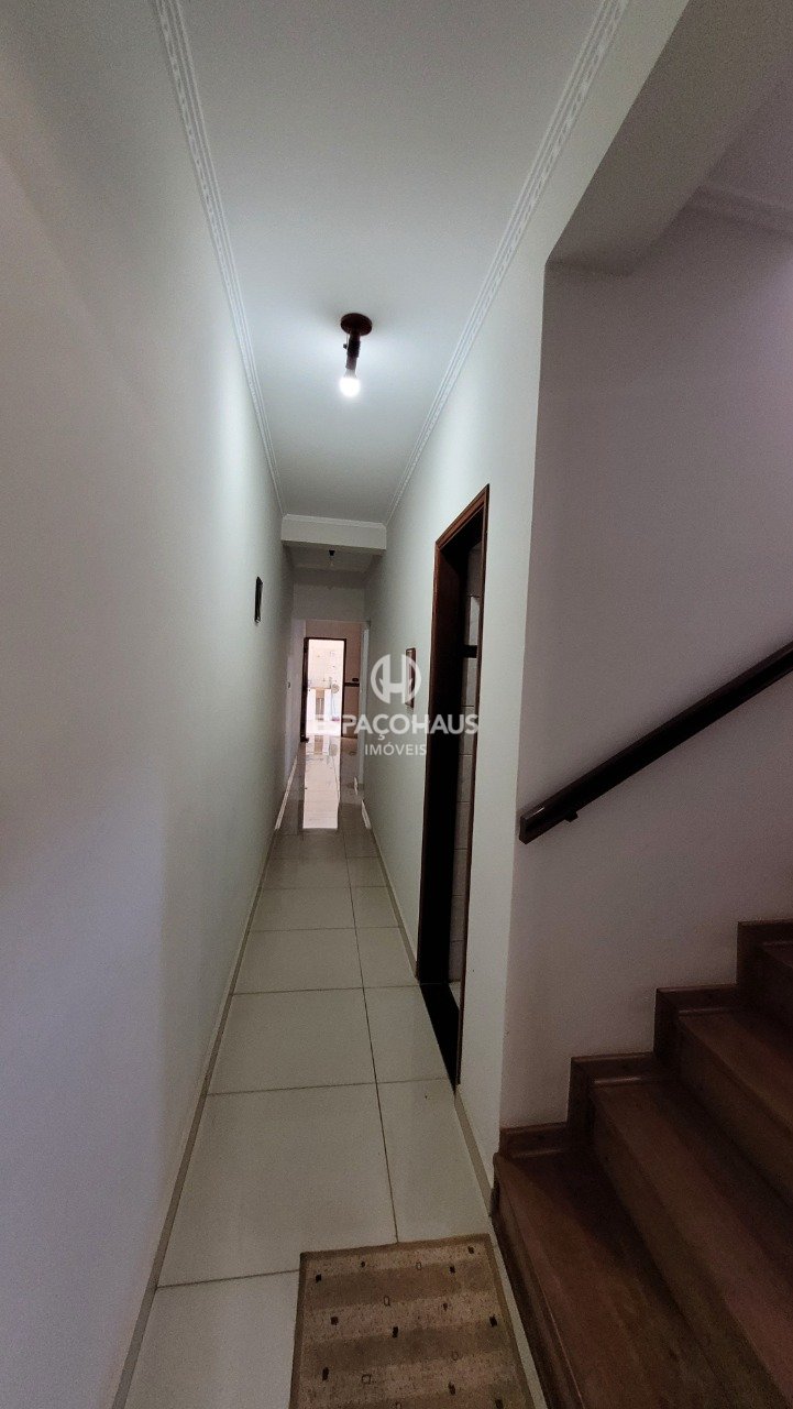 A casa conta com 4 quartos, sendo 2 dos quartos e a suíte no piso superior e 1 quarto no piso térreo, que além de quarto, pode ser também um escritório, sala de tv/estar, copa/sala de jantar, cozinha planejada, ampla área de serviço coberta, quintal com espaço gourmet, terraço superior para estender roupas, além de garagem coberta com portão eletrônico para 2 carros. A casa conta com acabamento em gesso e ventiladores de teto no quartos.