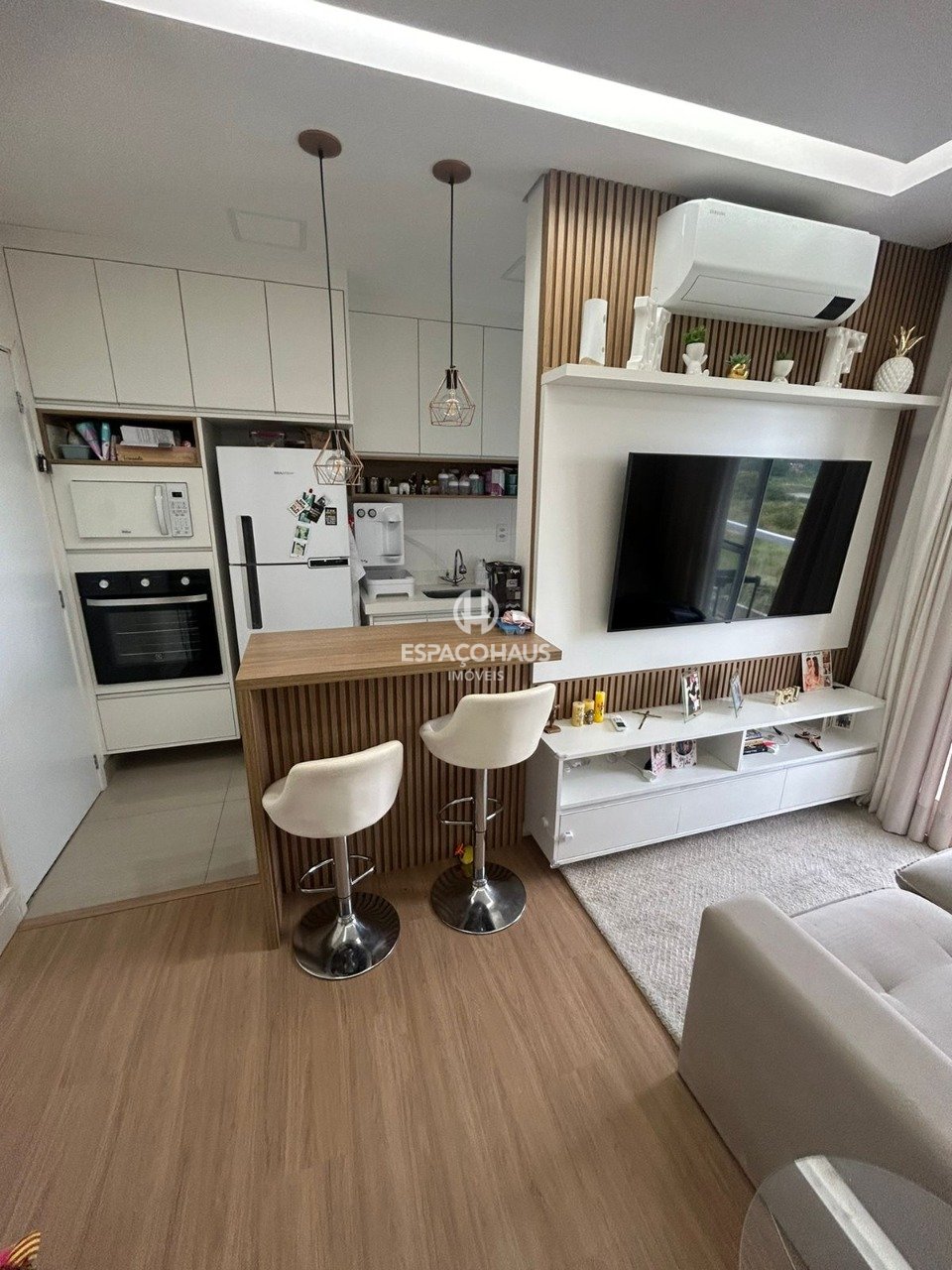 Banheiros com planejados, cozinha americana com planejados, possui ar condicionado e cortinas.