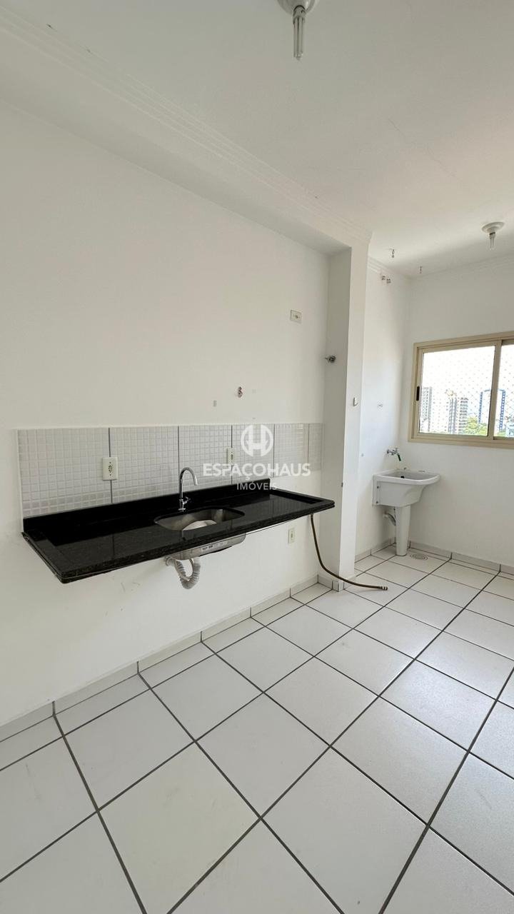 O apartamento conta com 1 quarto com planejados, sala com opção para ambientes, banheiro social, cozinha e vagas de garagem.