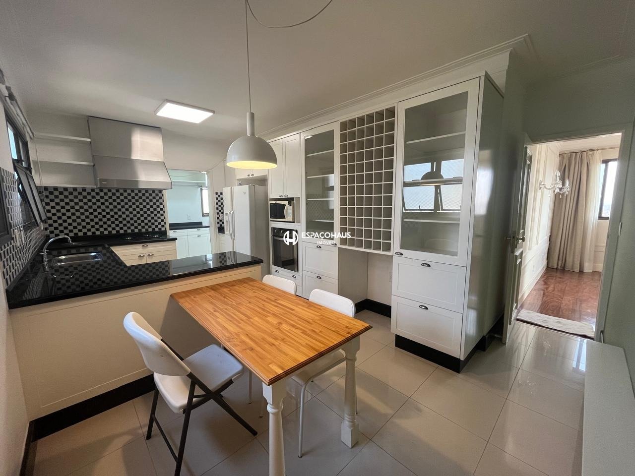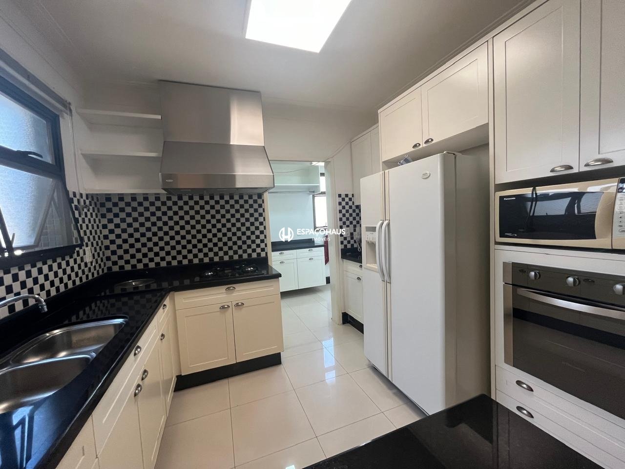 Cozinha: Completamente equipada, a cozinha conta com geladeira de duas portas, cooktop, forno, micro-ondas, coifa e lixeira embutida. Os armários planejados, criados com muito bom gosto pela renomada arquiteta Cristiane Barnabé, garantem um espaço funcional e esteticamente agradável.
