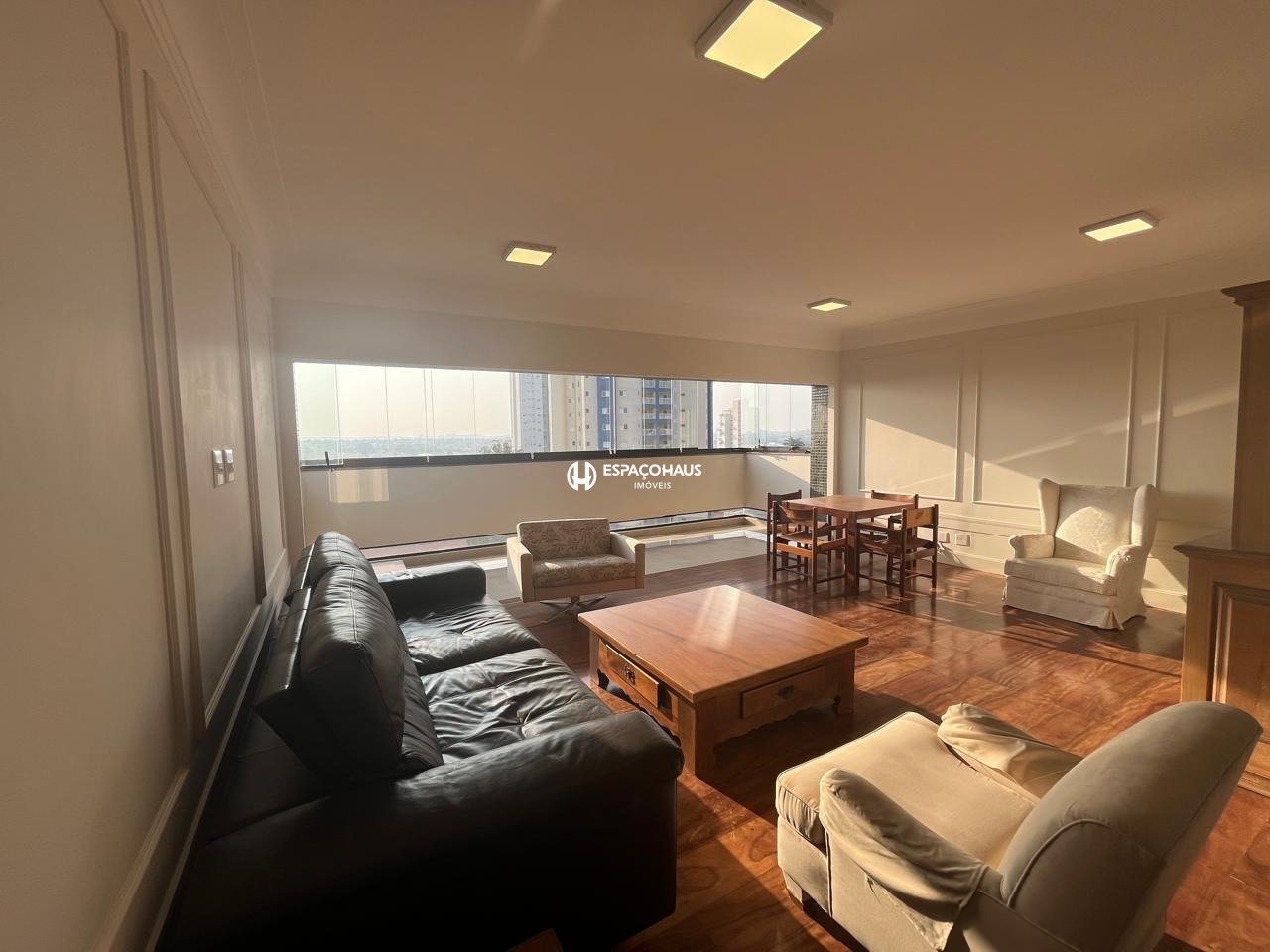 Sala: Uma ampla sala que acomoda três ambientes, ideal para receber amigos e familiares.