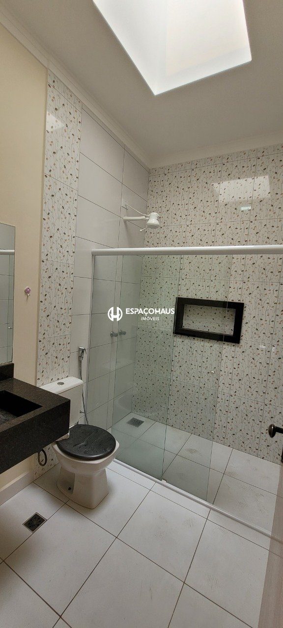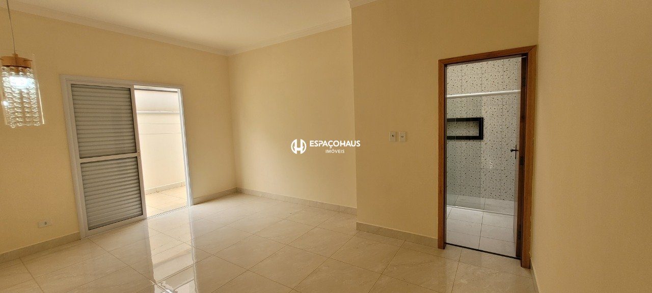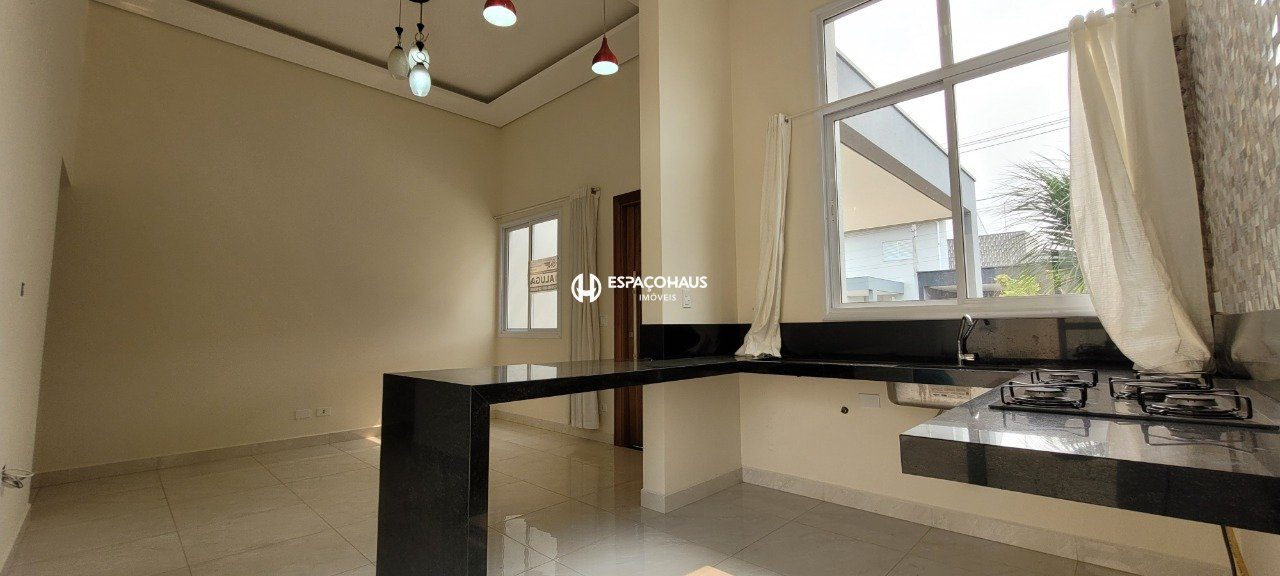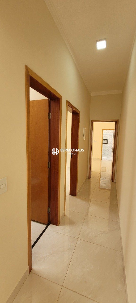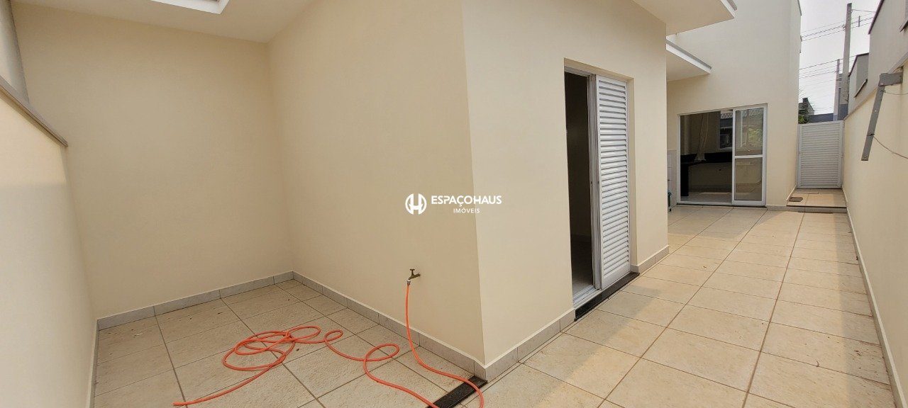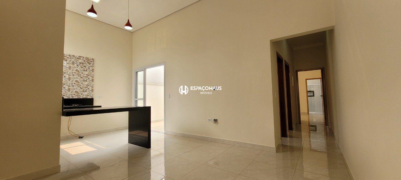 Casa térrea com 2 quartos, sendo 1 suíte, sala com opção de 2 ambientes, cozinha com cooktop integrada a sala, banheiro social, área de serviço, quital, além de garagem coberta para 1 carro e jardim frontal. A casa conta com bastante iluminação natural e acabamento em porcelanato.