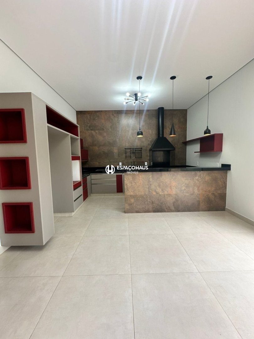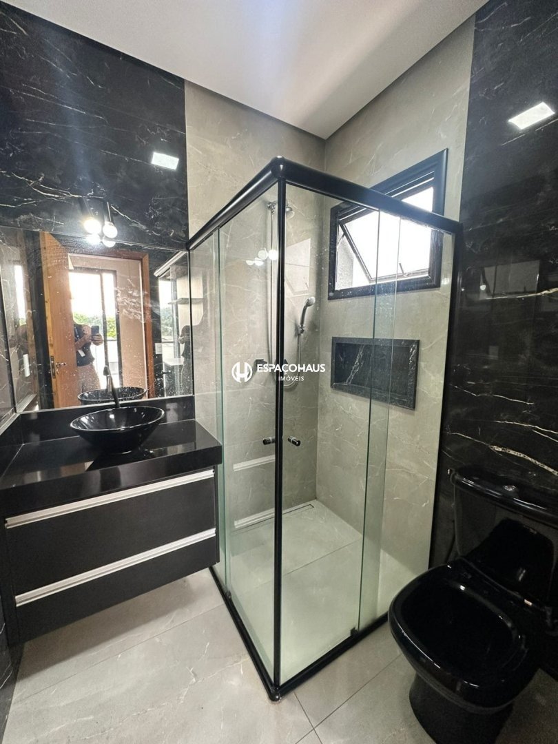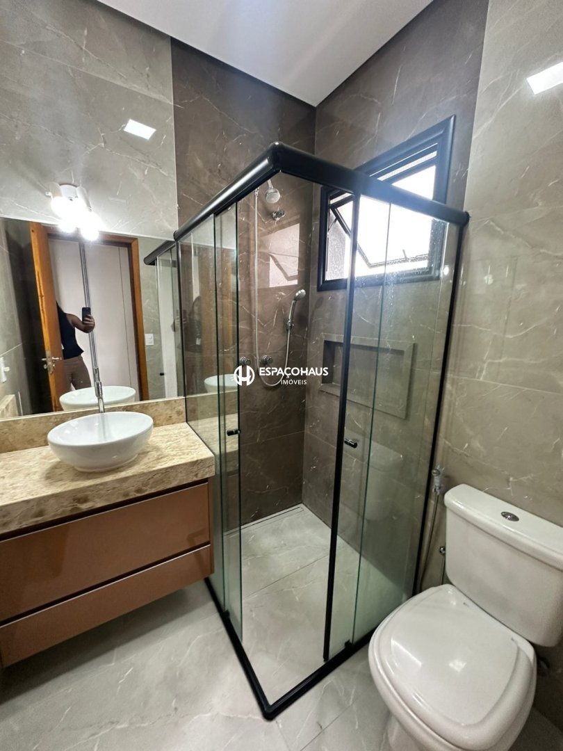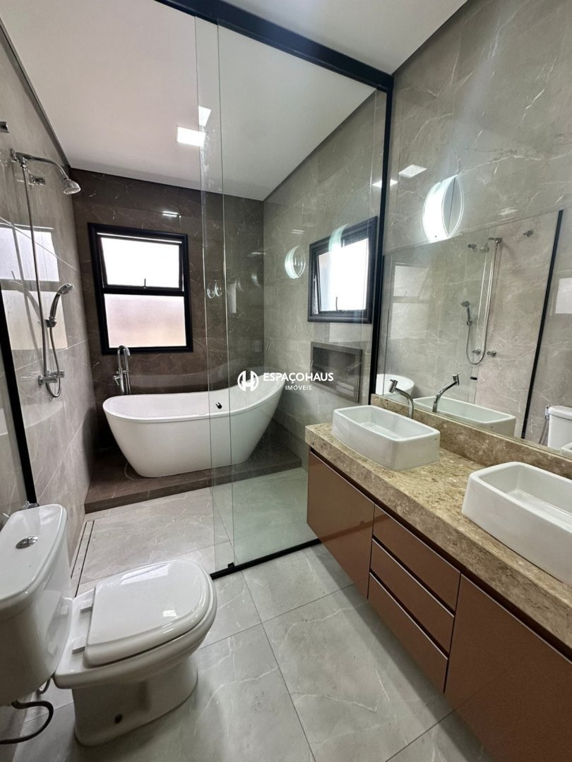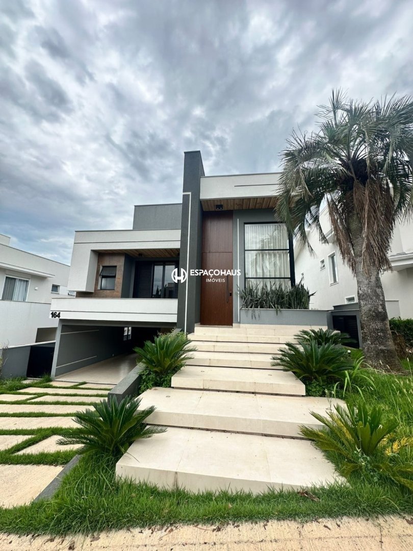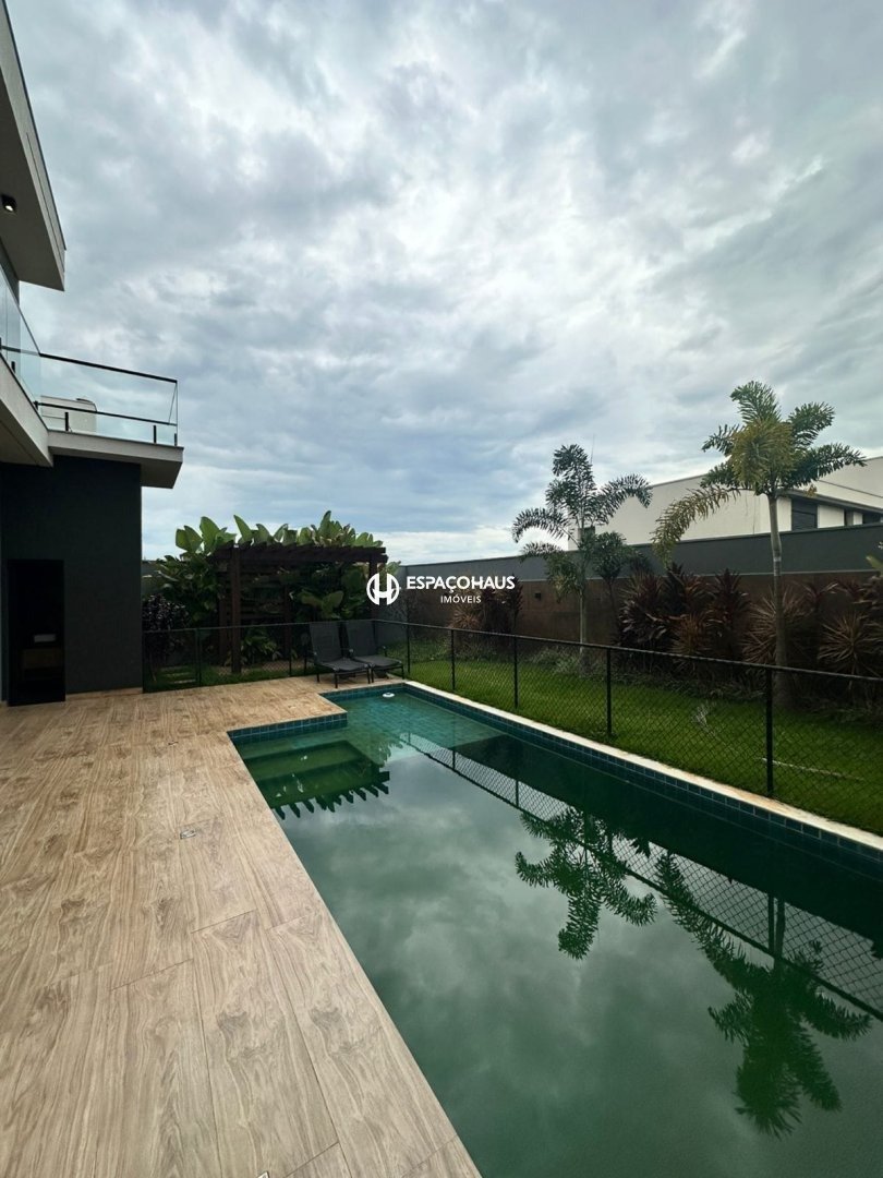 Sobrado com 3 suítes, 1 delas mater com closet e hidromassagem, sala espaçosa com opção para 2 ambientes, lavabo, cozinha planejada, área de serviço com armários, quintal com espaço gourmet e piscina, além de garagem para até 4 carros, sendo 2 delas cobertas.