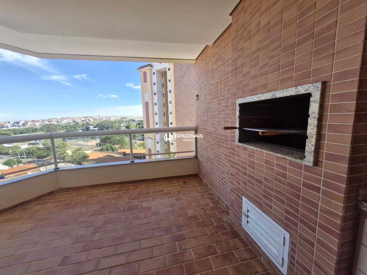 Um dos grandes destaques é a ampla varanda, que se estende por toda a frente do apartamento, integrando os três dormitórios. Perfeita para momentos de lazer, ela conta com churrasqueira, tornando-se um espaço ideal para reunir amigos e família.