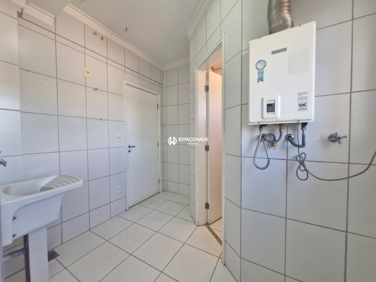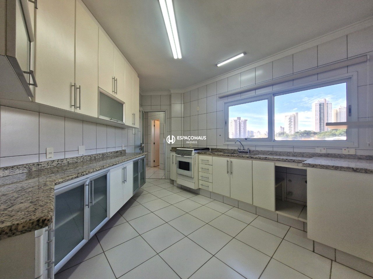 A cozinha é espaçosa, equipada com muitos armários planejados e fogão com forno, ideal para quem gosta de cozinhar com organização e praticidade. A área de serviço é bem ventilada e funcional.