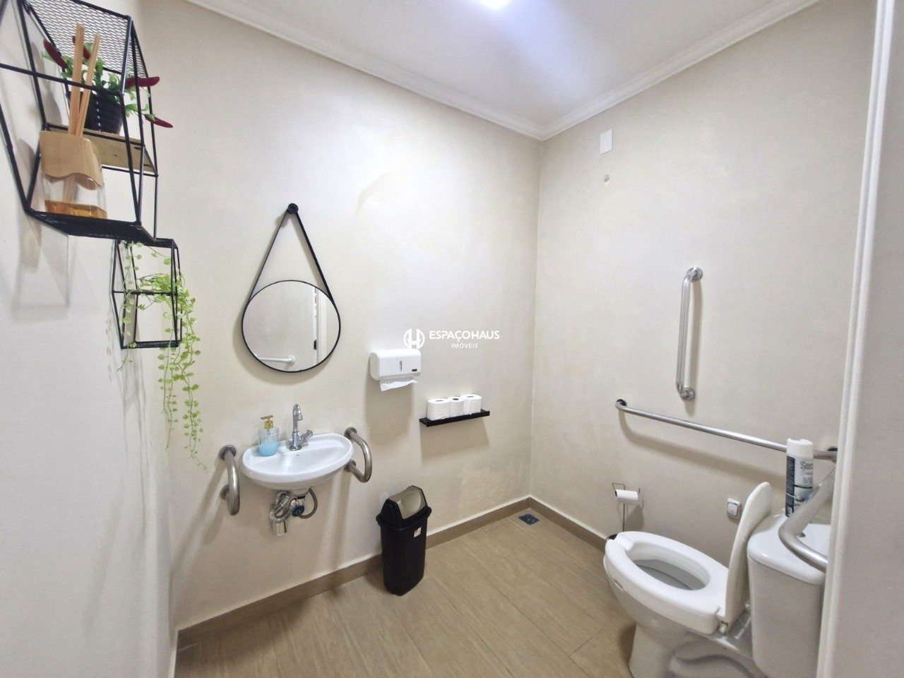 No espaço inclui recepção compartilhada mobiliada, banheiro feminino, masculino e um banheiro totalmente adaptado para necessidades especiais.