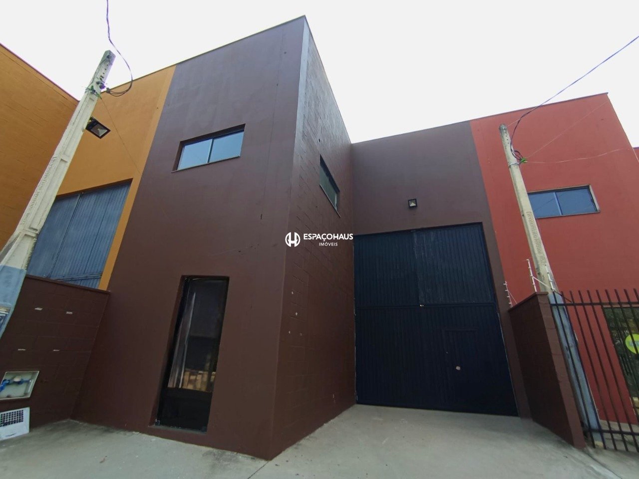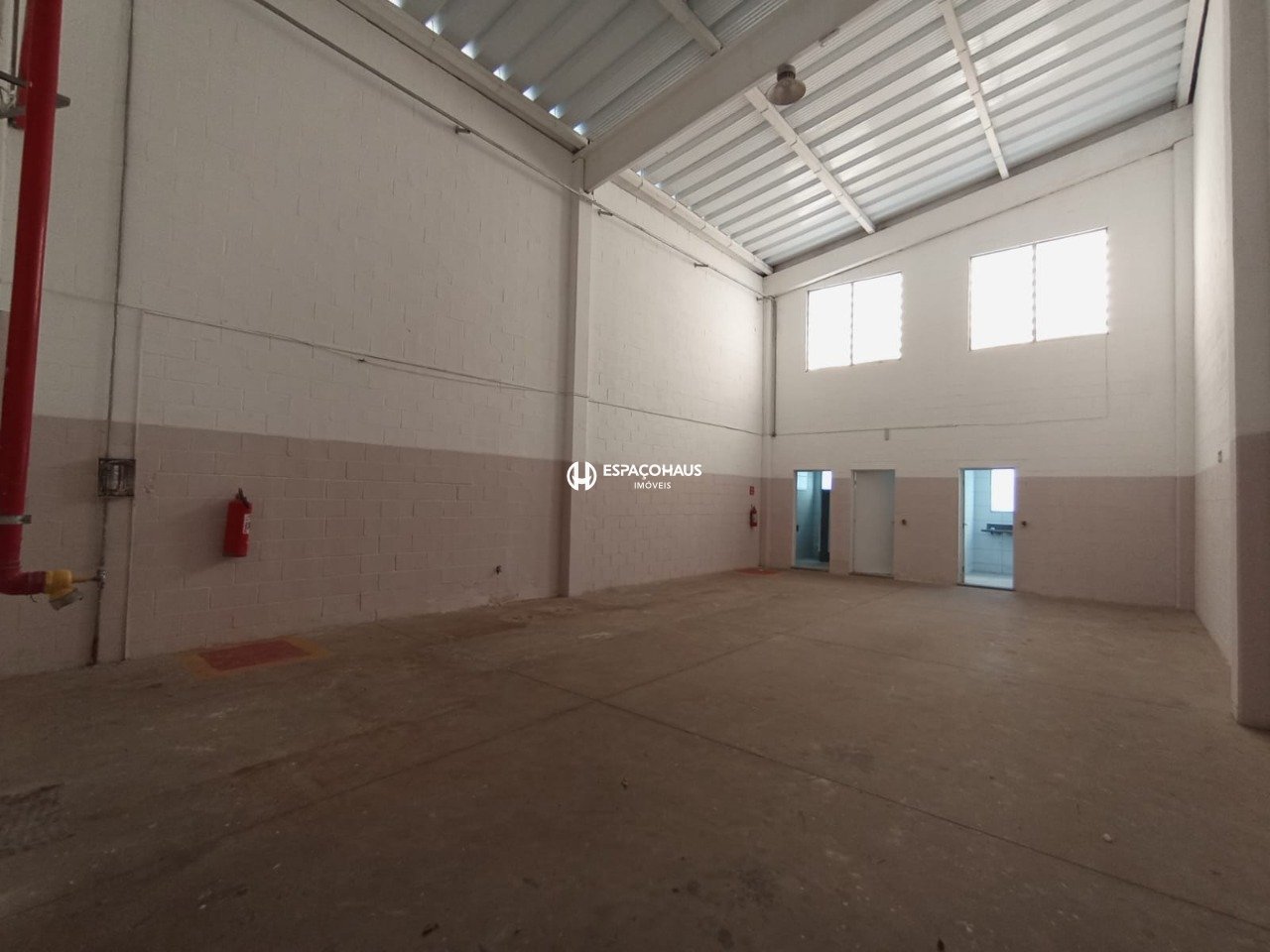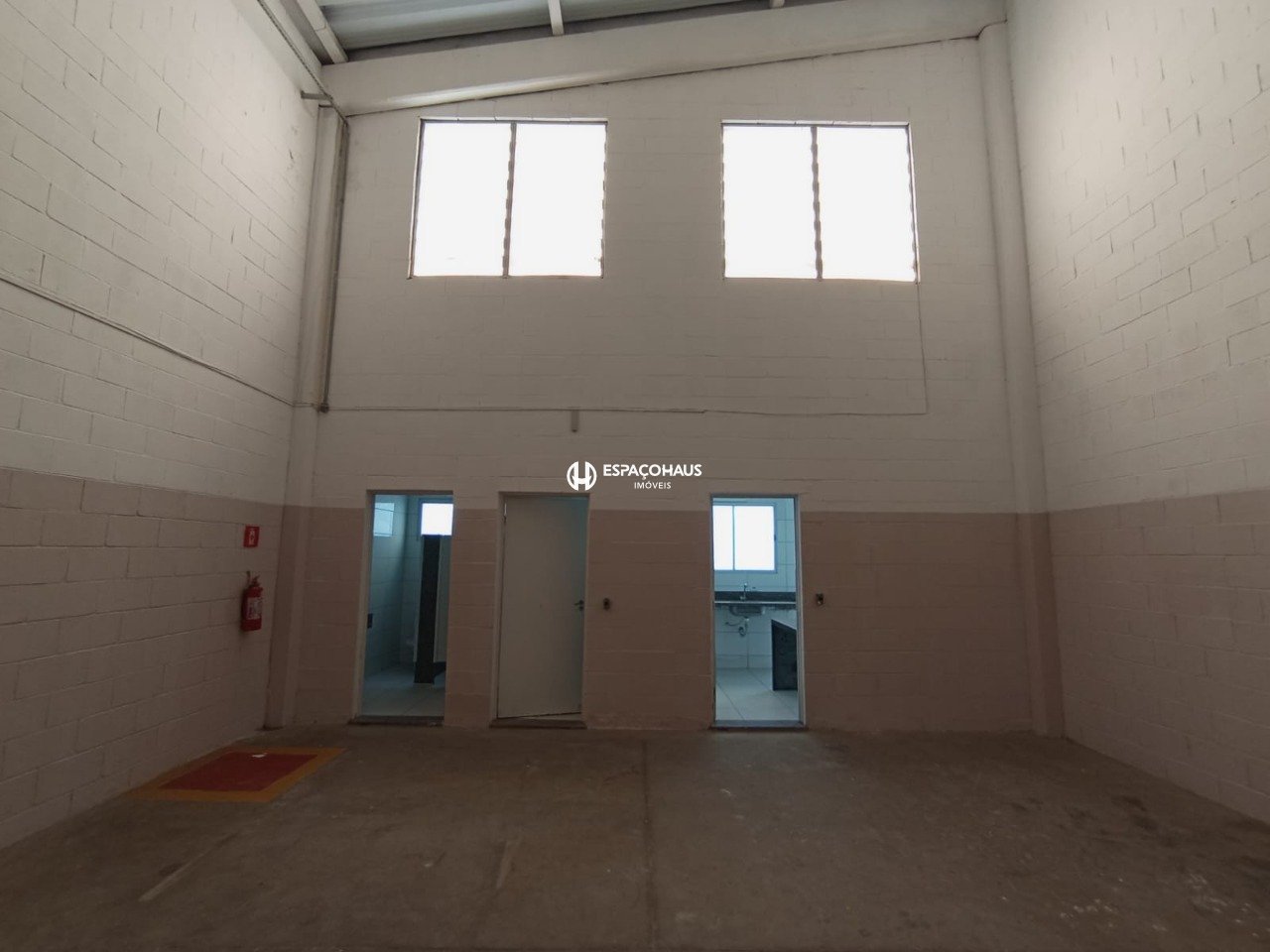 O imóvel é um galpão com escritório de dois andares e um banheiro na frente. Nos fundos, conta com uma ampla área de convivência, equipada com dois banheiros com duas cabines cada e uma cozinha, oferecendo funcionalidade completa para operações comerciais ou industriais.
