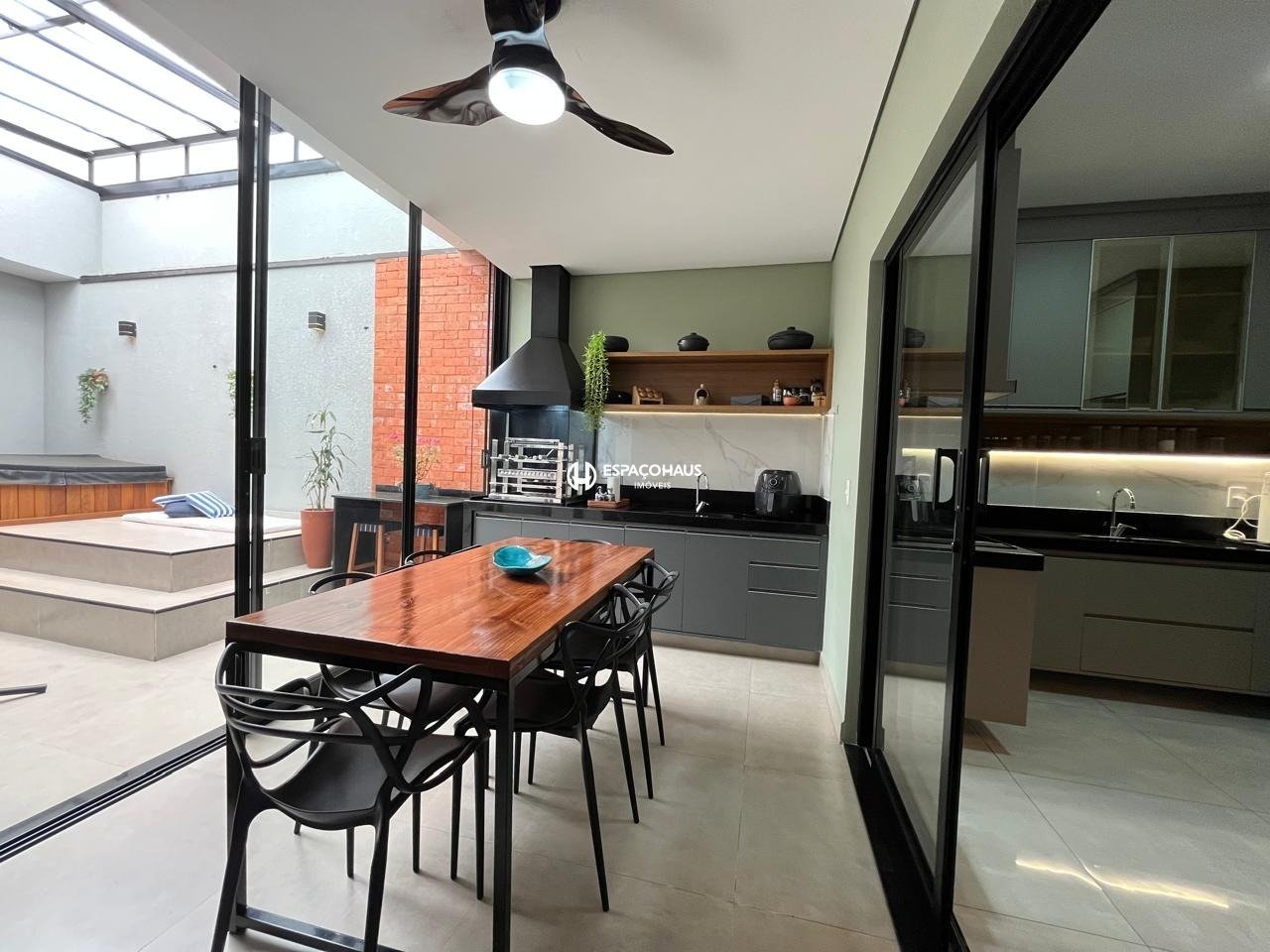 A área gourmet é completa, com churrasqueira, armários planejados e ventilador de teto, perfeita para receber familiares e amigos.