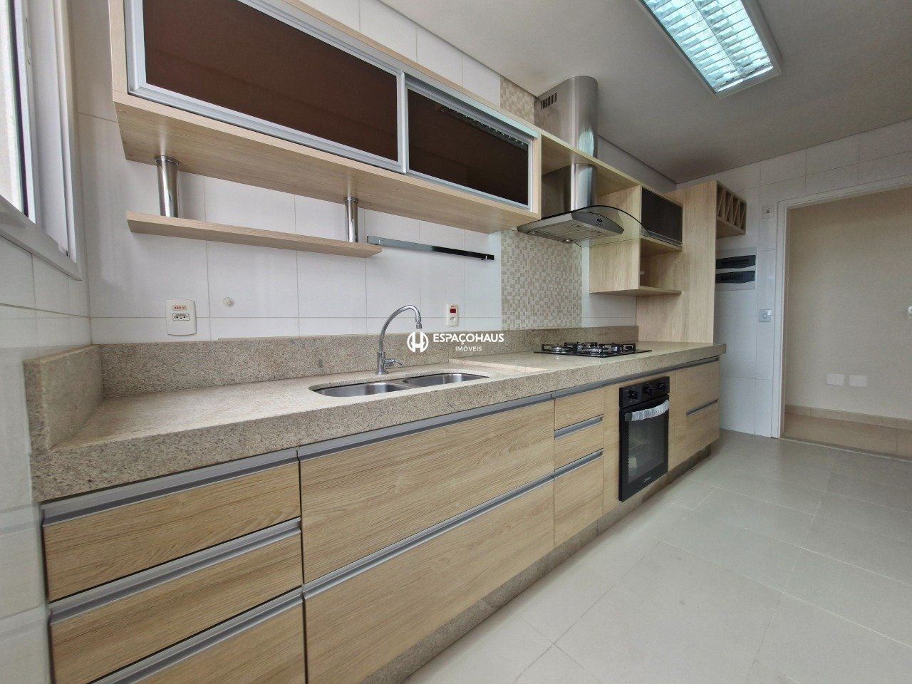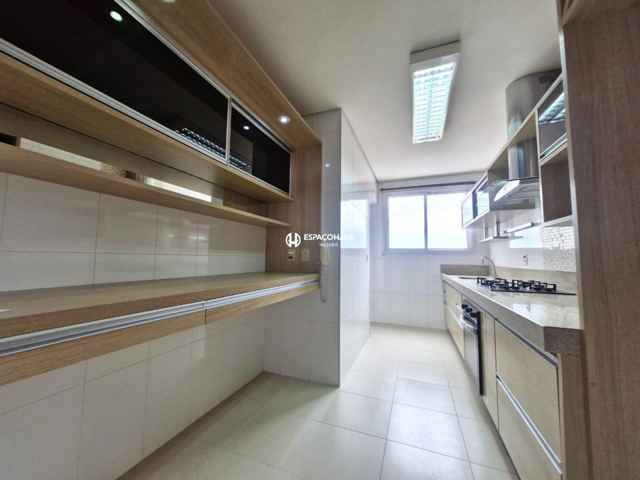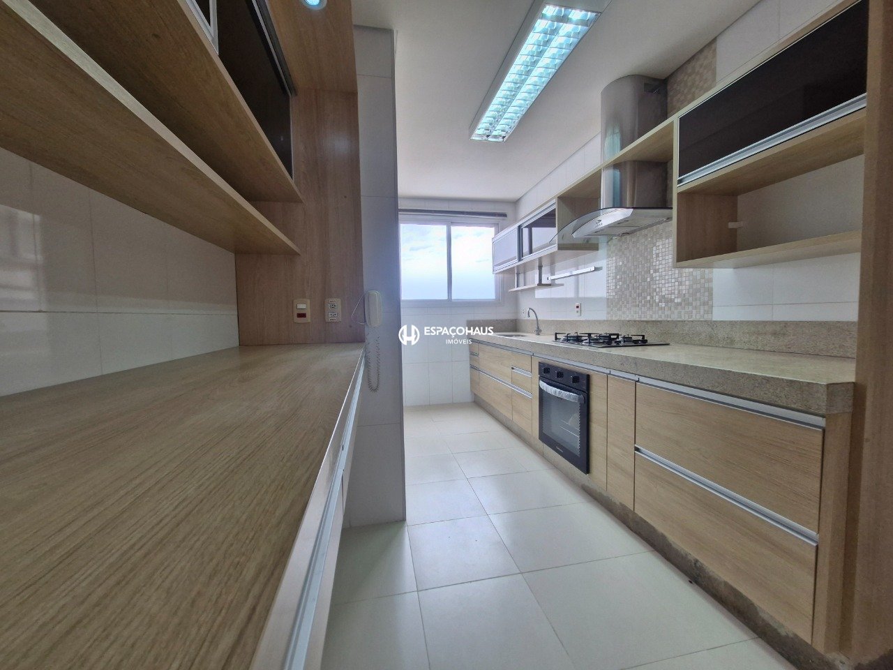 A cozinha é planejada e possui forno, cooktop e coifa e ainda conta com despensa, lavanderia e banheiro de serviço.