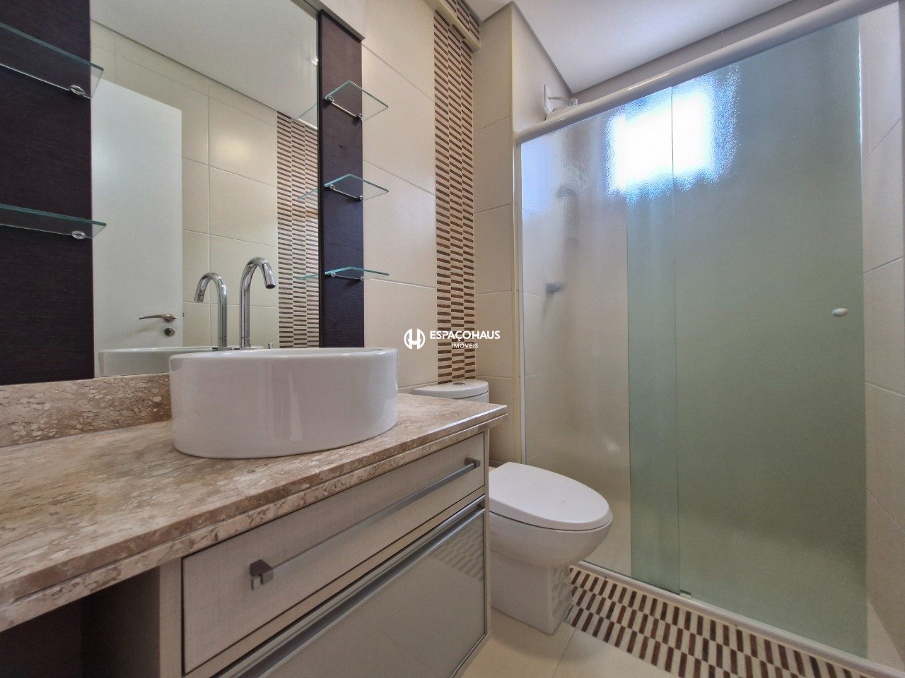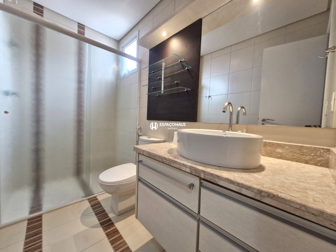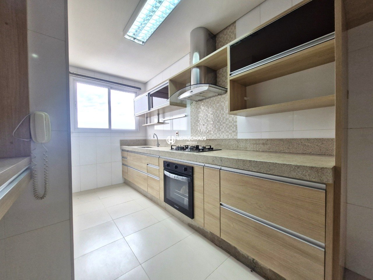 A cozinha é planejada e possui forno, cooktop e coifa e ainda conta com despensa, lavanderia e banheiro de serviço.