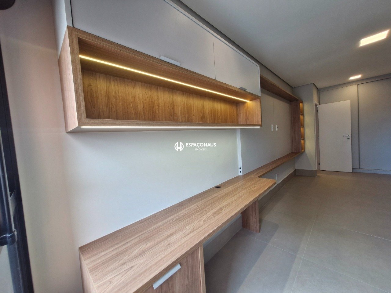 Nos quartos, persianas automatizadas, iluminação aconchegante e belissimos móveis planejados, desde os armários, até painel para TV, cabeceira e mesinhas de cabeceira.