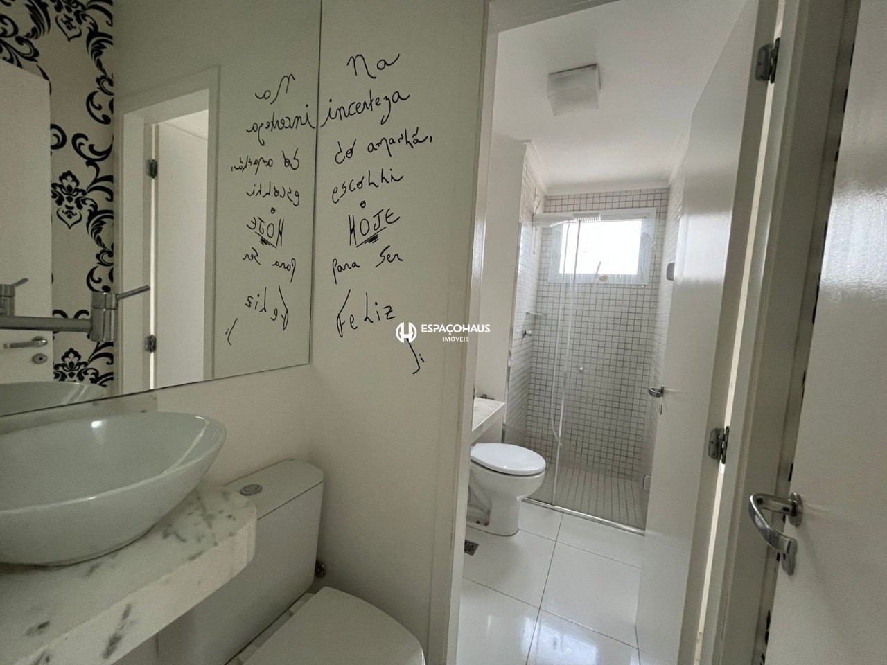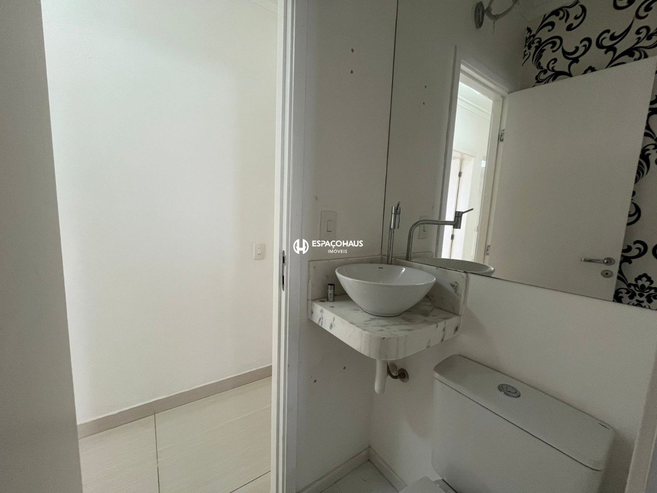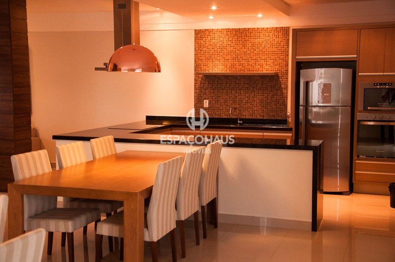 O imóvel conta com 3 dormitórios, sendo duas suítes, todos com marcenaria sob medida, proporcionando organização e sofisticação aos espaços. Possui lavabo, cozinha rica em planejados e equipada com cooktop, além de lavanderia bem estruturada, com muitos armários para facilitar o dia a dia. A sala é aconchegante e elegante, com painel de TV e espelho decorativo, agregando charme e modernidade ao ambiente.