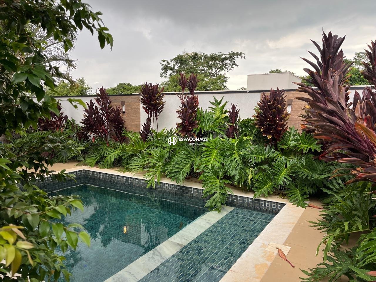 O teto possui acabamento em painel de madeira, agregando sofisticação. Na área externa, há piscina aquecida com paisagismo ao redor e sauna.