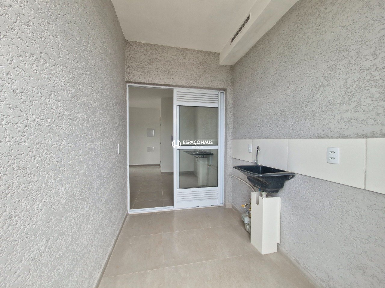 A lavanderia está localizada na varanda, que é ampla e bem arejada, ideal para otimizar o espaço e ainda contar com um ambiente agradável.