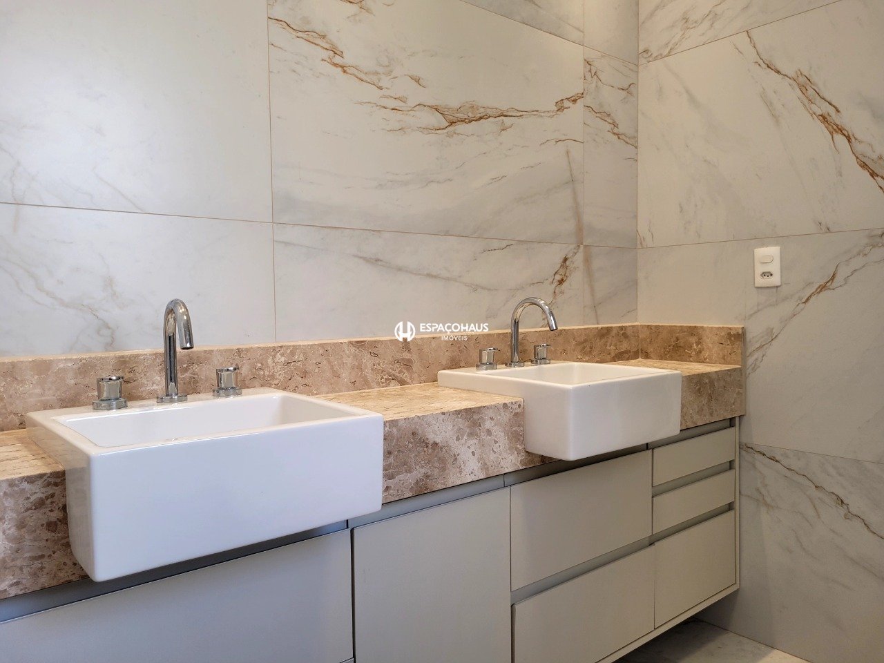 - Banheiro da suíte master com banho e cuba dupla;