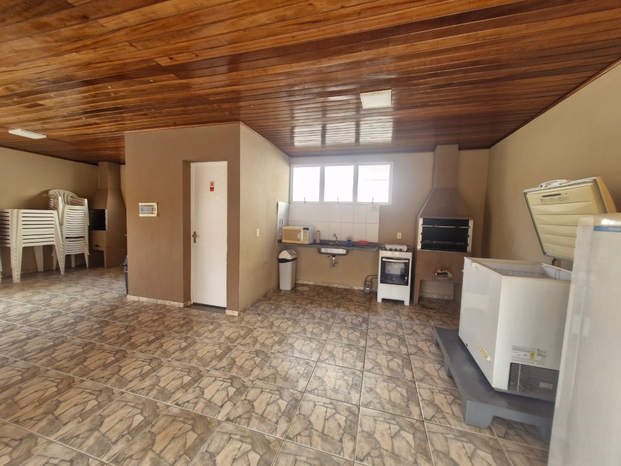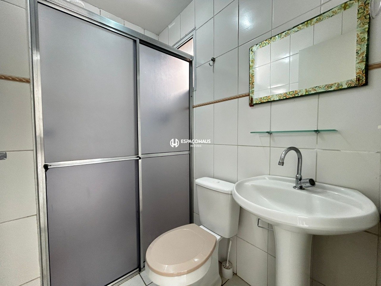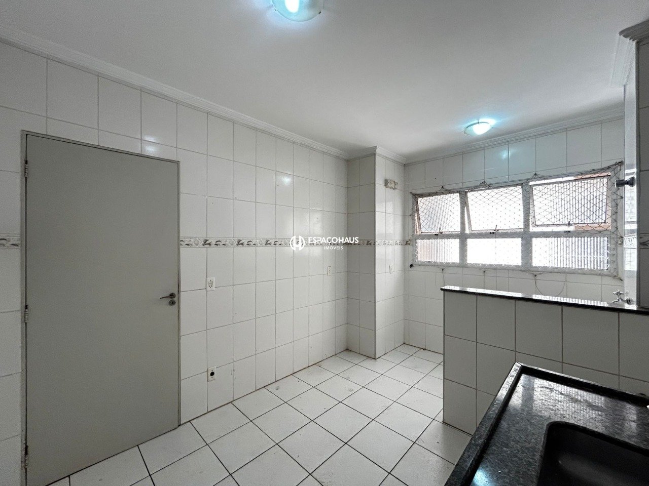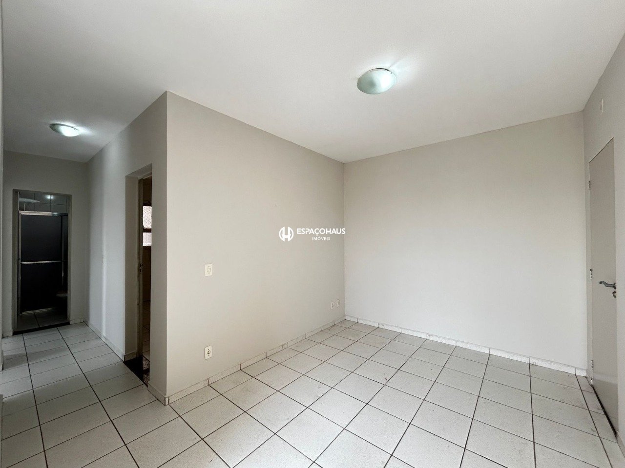 Apartamento de 67m² com sala com sacada, 02 quartos, cozinha com gabinete e mesa, área de serviço e banheiro.