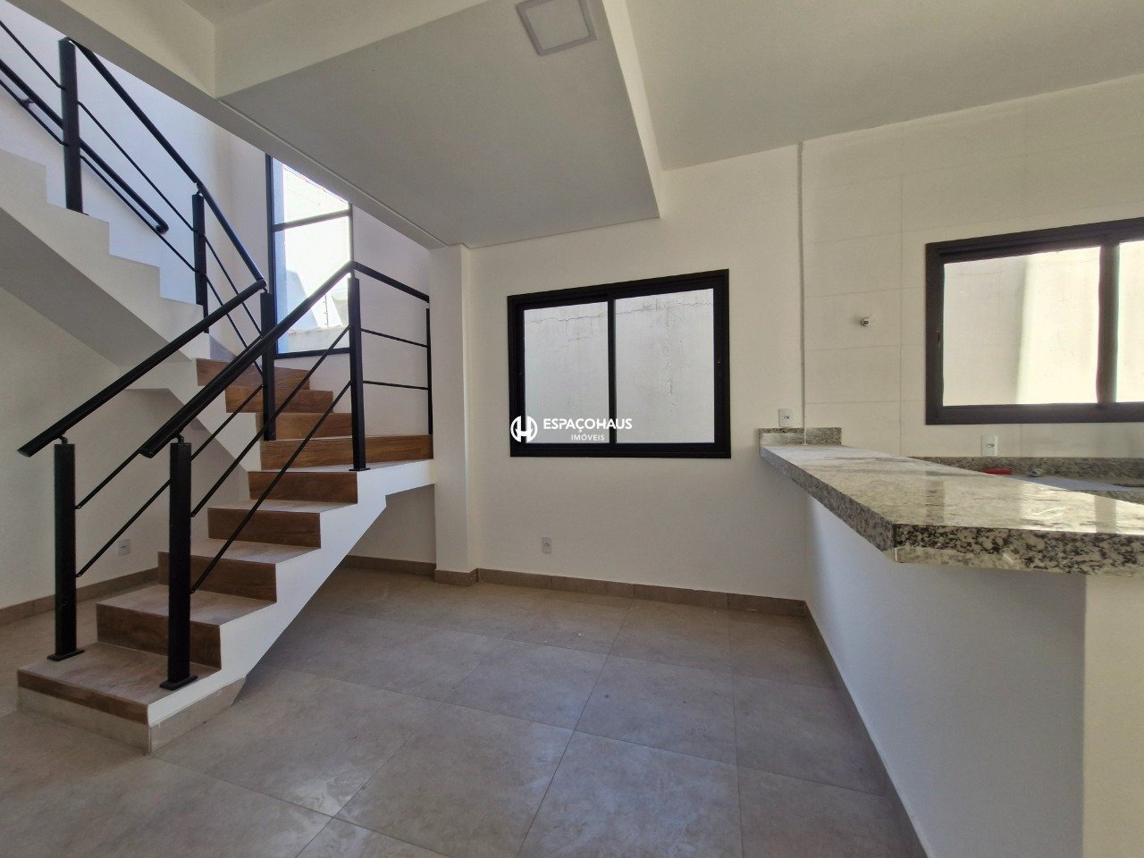 No piso inferior, o sobrado dispõe de uma aconchegante sala de convivência, além de um banheiro completo. A área social se integra de forma harmoniosa à sala de jantar e à cozinha, criando um ambiente amplo e funcional, perfeito para receber familiares e amigos. Nos fundos, o imóvel oferece um quintal cimentado, com espaço destinado à lavanderia, garantindo praticidade nas tarefas do dia a dia.