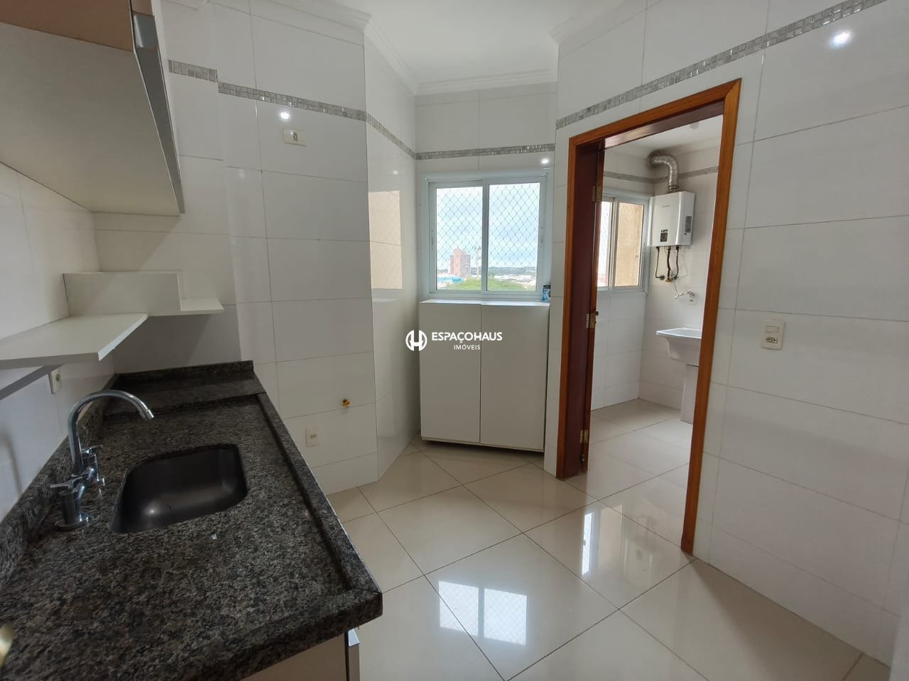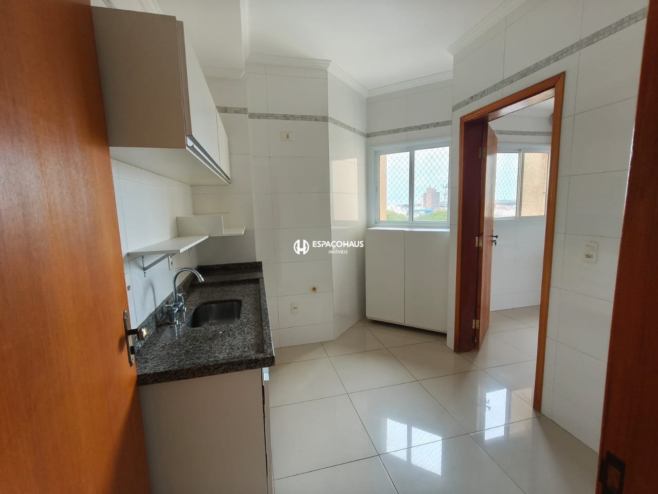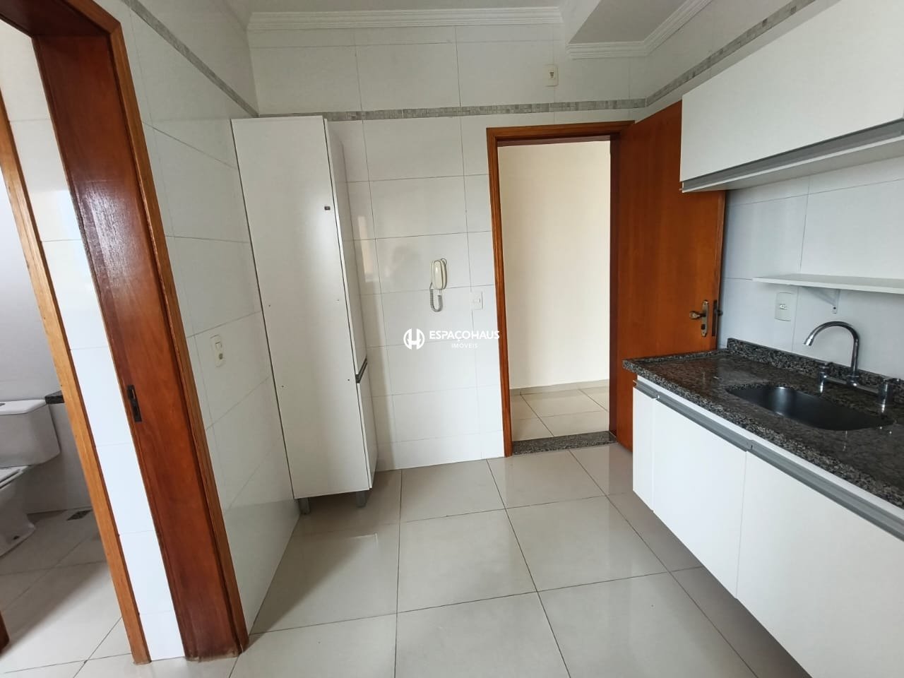 A cozinha independente é equipada com armários planejados, otimizando o espaço e garantindo praticidade no dia a dia. Ao lado, a despensa e a área de serviços completam a estrutura voltada à funcionalidade. Além disso, o apartamento possui banheiro social , oferecendo mais conforto.